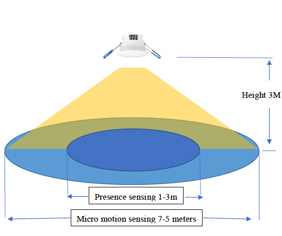 (2) "Presence" detection area: it can detect the human body in static state, such as standing still, squatting still, sitting still, etc.