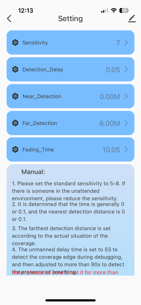 A variety of parameters such as detection distance, detection sensitivity, delay time and light sense can be configured through the mobile terminal to adapt to different application scenarios.